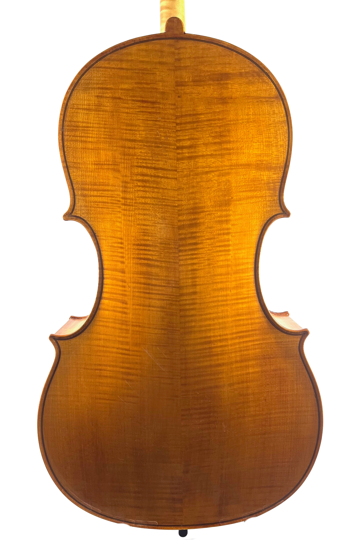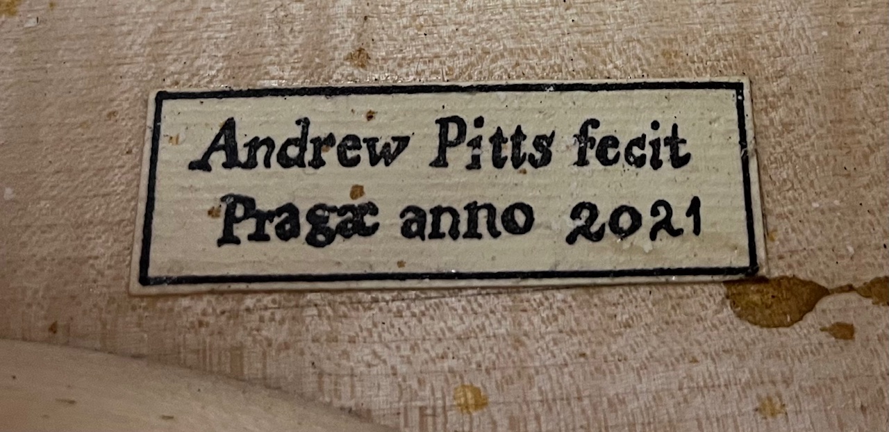 7/8 Handmade cello by Andrew Pitts, Prague, 2021. Gorgeous wood and workmanship on this completely handmade instrument by master luthier, Andrew Pitts. Wonderful golden amber varnish. A great, full bodied tone in a slightly smaller cello.