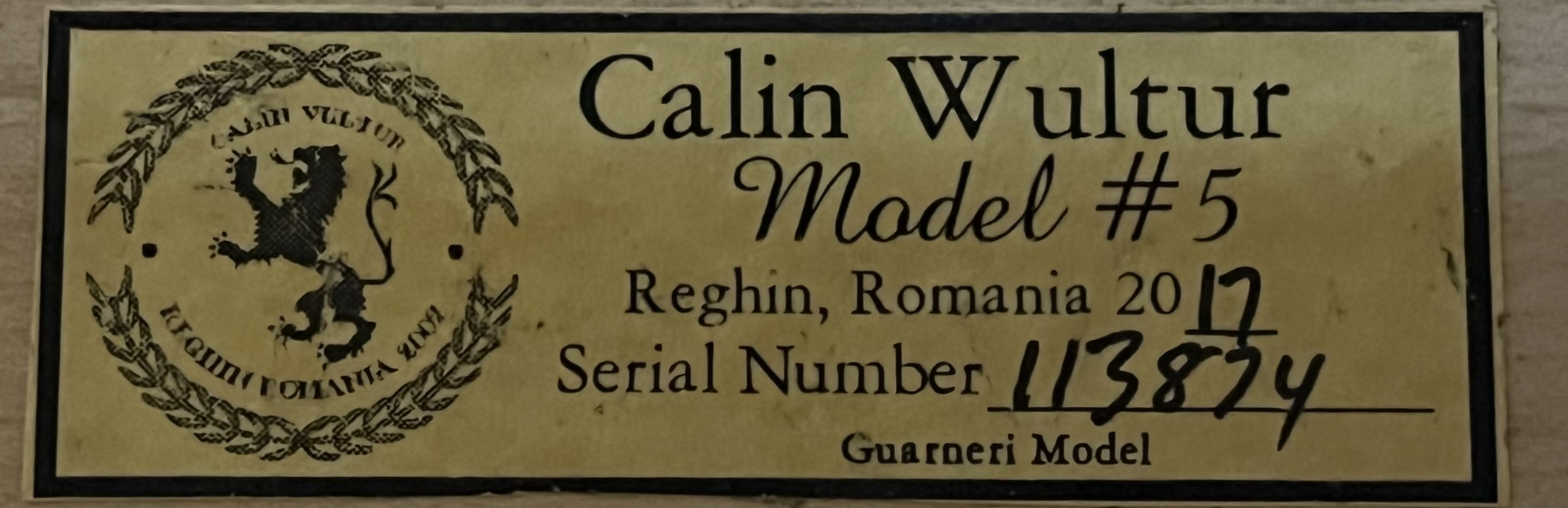 Calin Wultur GW#5 Handmade European Cello. Fine European tone wood and hand applied spirit varnish. Calin Wultur instruments are the best handmade production instruments coming from Reghin Romania. This is a very clear and even sounding cello with good projection. Perfect for the advancing soloist and aspiring professional player.