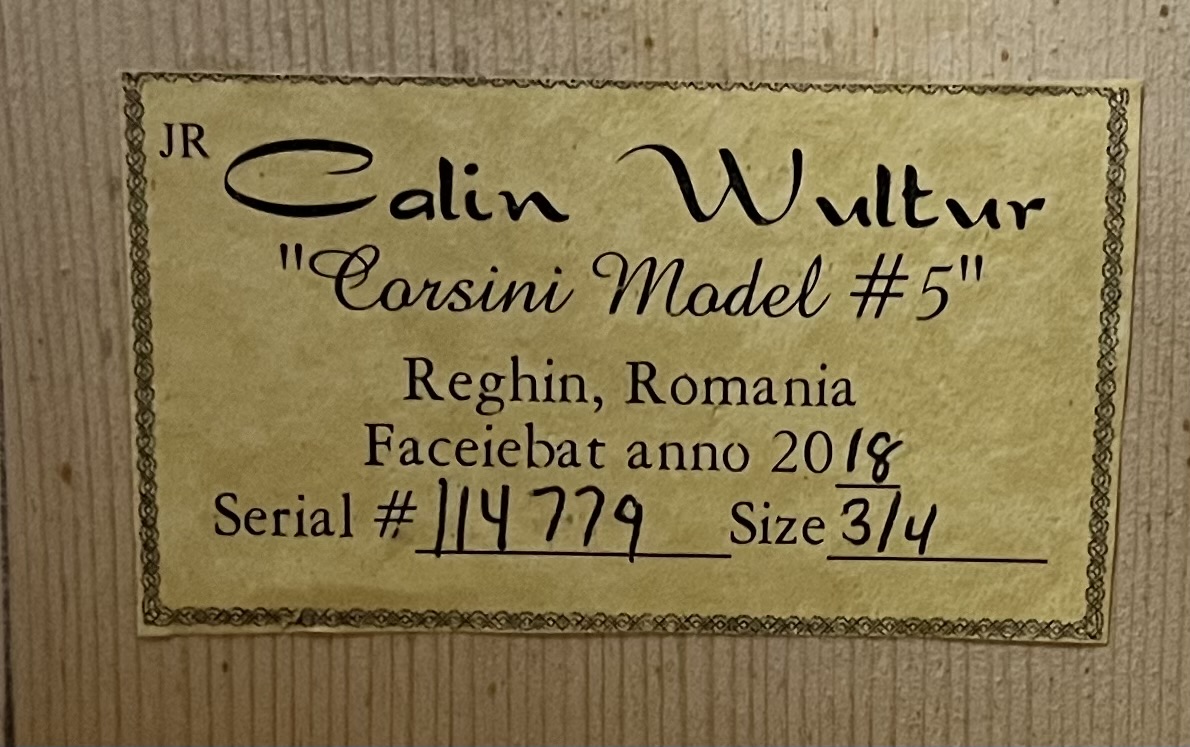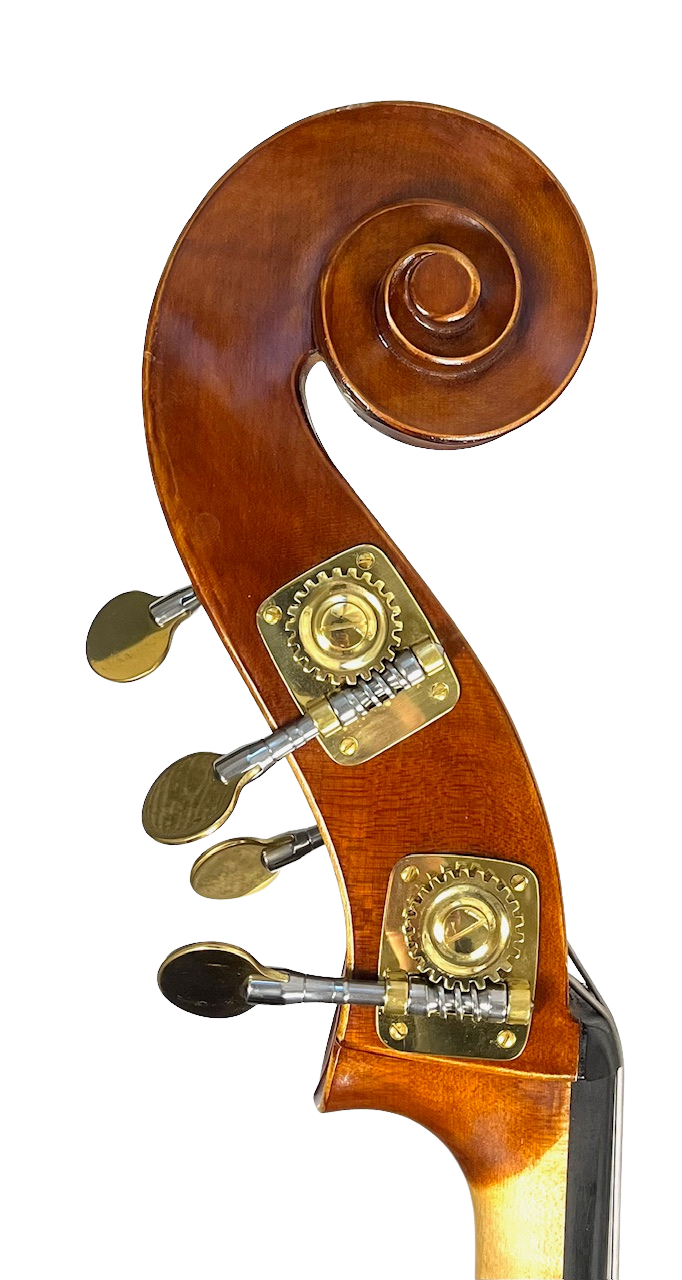 3/4 Handcarved bass from Calin Wultur in Romania. Fine European spruce and maple tone wood. And varnished with German Spirit varnish. These are professional quality instruments produced in a small Atelier in Romania