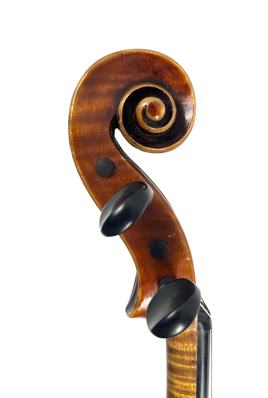 German made copy of Antonius Stradivarius. Markneukirchen, Germany early 20th Century. Handmade with fine Bosnian flamed maple back. Carpathian spruce top. Antiqued Spirit Varnish.