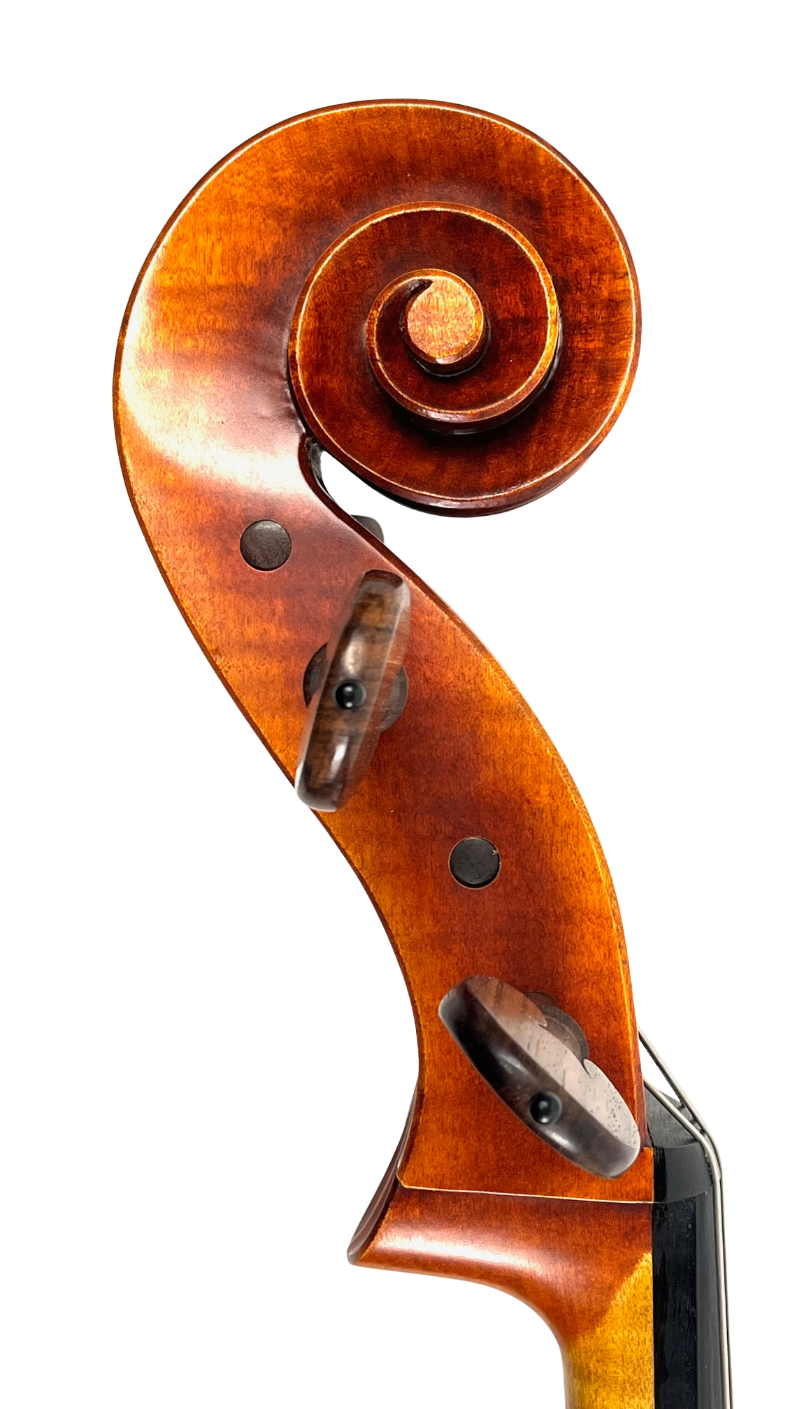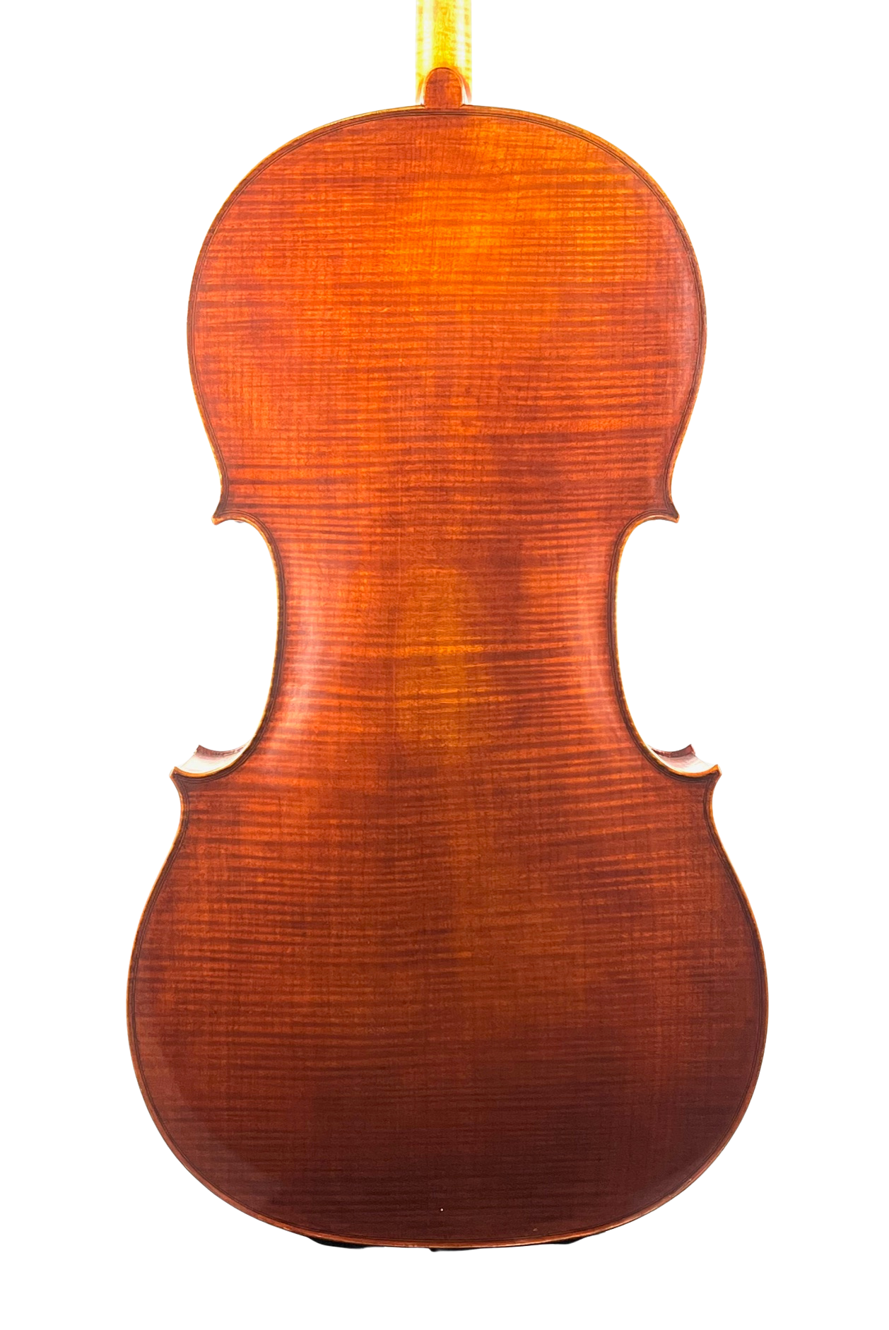 A modern American cello by Erich Schweiger - Seattle Washington, 2018. Traditional as the instruments he makes, Erich built his career. During adolescence he apprenticed under the expertise of violin restorer William S. Pinches. The awakening of his talent found guidance under Hans Nebel and Arnold Bone at the University of New Hampshire Violin and Bow Institute. With his confidence and skill ripening, young Erich entered the Violin Making School of America in Salt Lake City, Utah. Under the direction of Peter Paul Prier and Jeffrey Robinson, Erich immersed himself in the Cremonese methods of violin, viola, and cello construction, restoration, instrument and bow identification. This cello features Pacific Northwest Maple back and sides, and Spruce from Alaska. The varnish is oil based and hand applied. It has a rich, full bodied tone with good projection