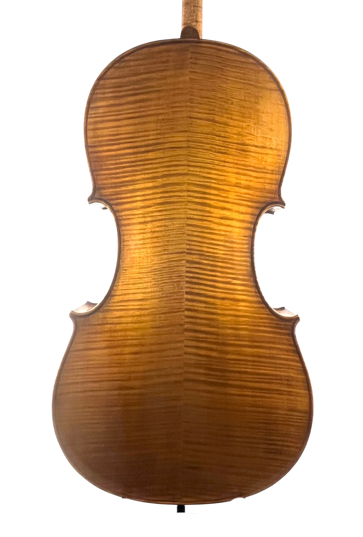 Fine French cello from Mirecourt made in the late 19th century. Labeled Jean Baptiste Vuillaume. Rich yellow/amber spirit varnish. A great sounding professional cello in good preservation