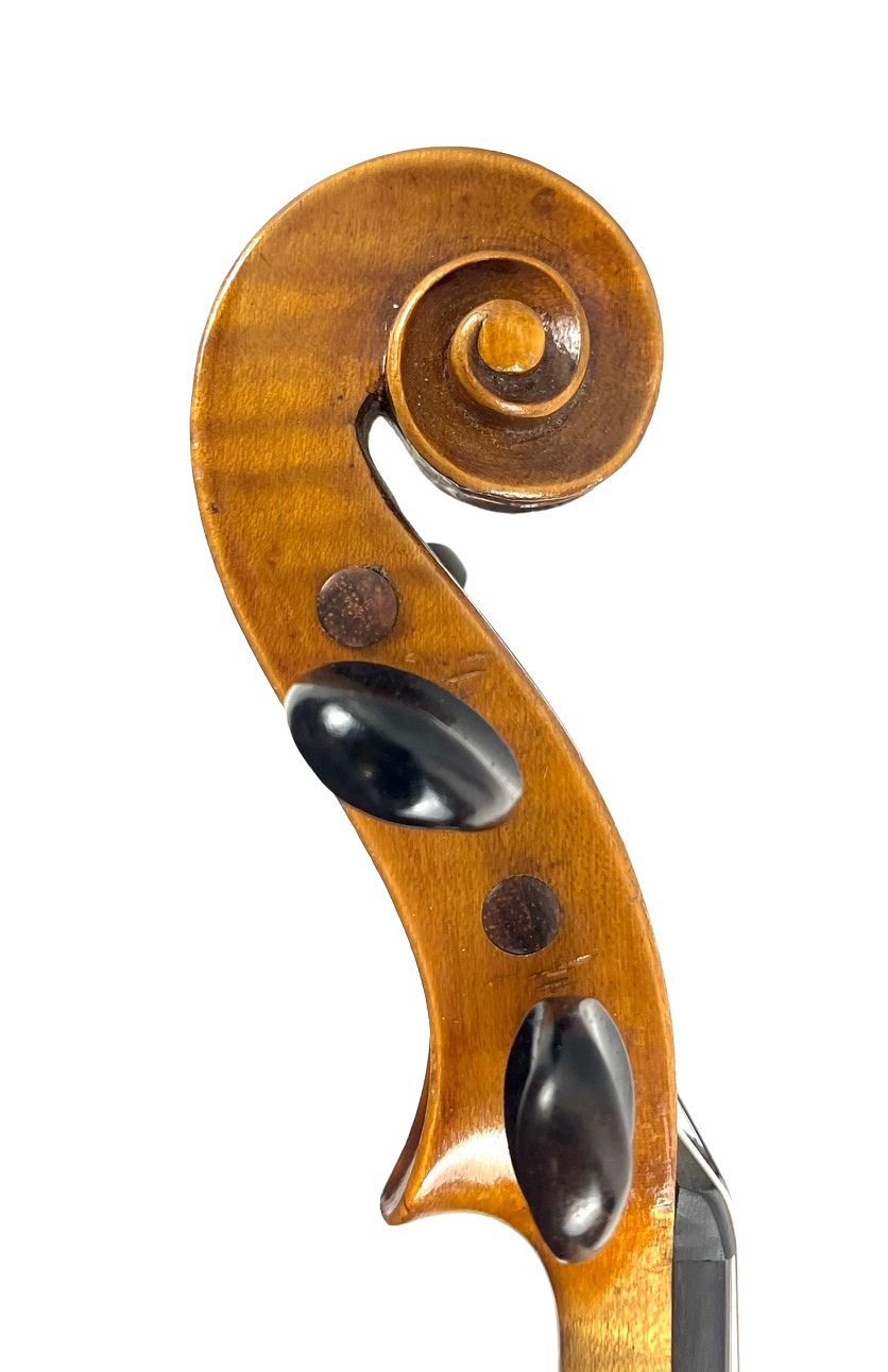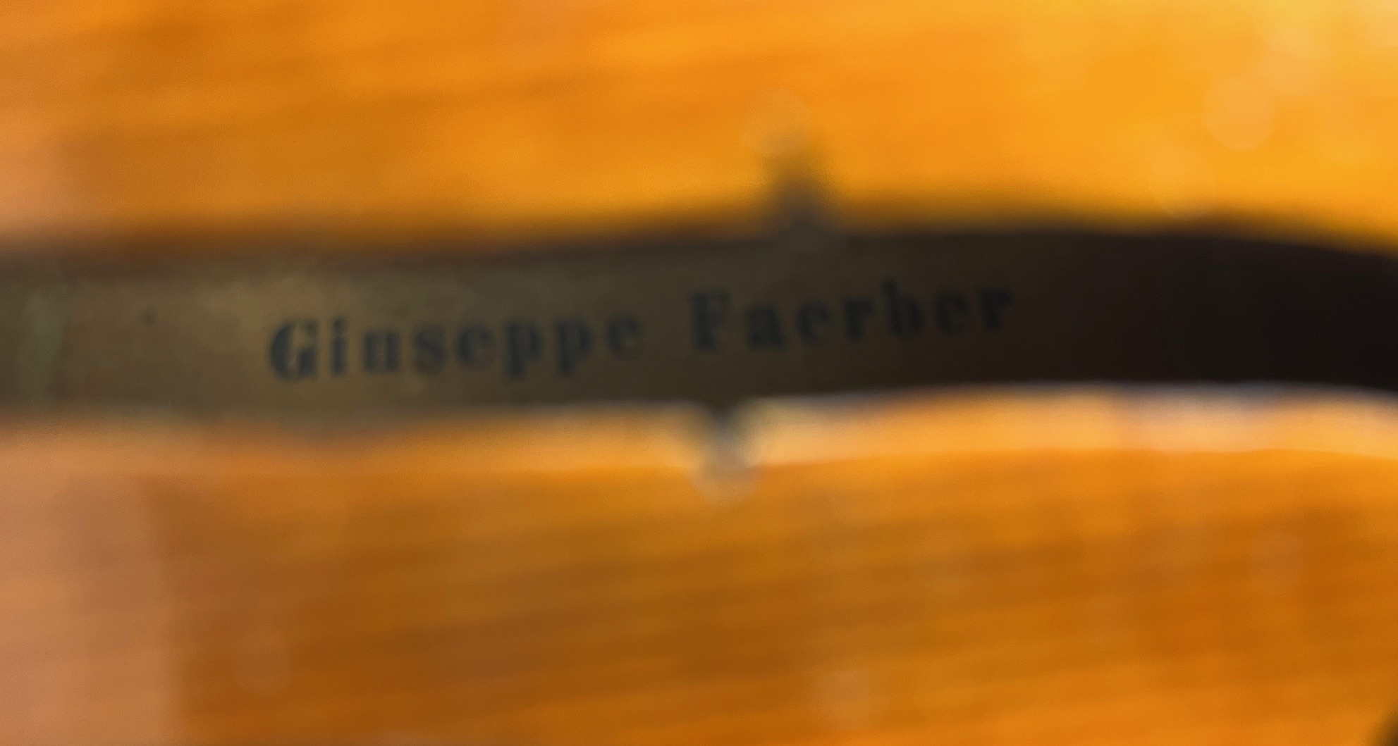 German violin from the early 20th century, Saxony. Made in the model of Guarneri del Gesu. Branded Giueppe Faerber inside. Straight, non antiqued Medium brown spirit varnish