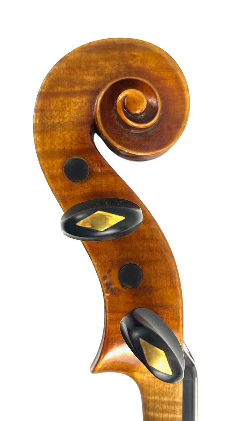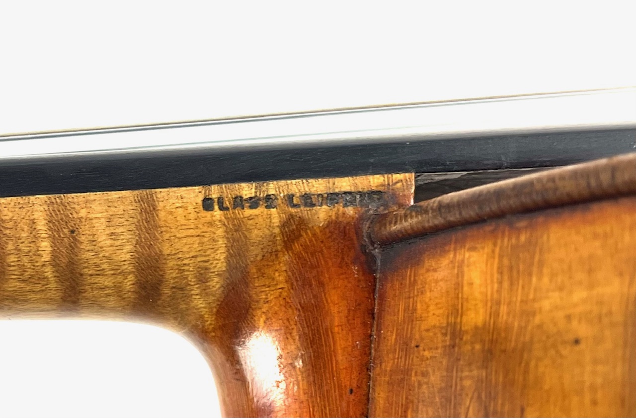 German violin by Johann Glass Leipzig 1909. Original label inside and branded on neck. Johann Glass worked as repairer to the Gewandhaus Symphony Orchestra, and made violins in the Cremonese Italian style after Stradivari and Guarneri del Gesu. This violin has a fine yellow/amber spirit varnish over Bosnian maple and Carpathian spruce. The violin is responsive and clear with good projection