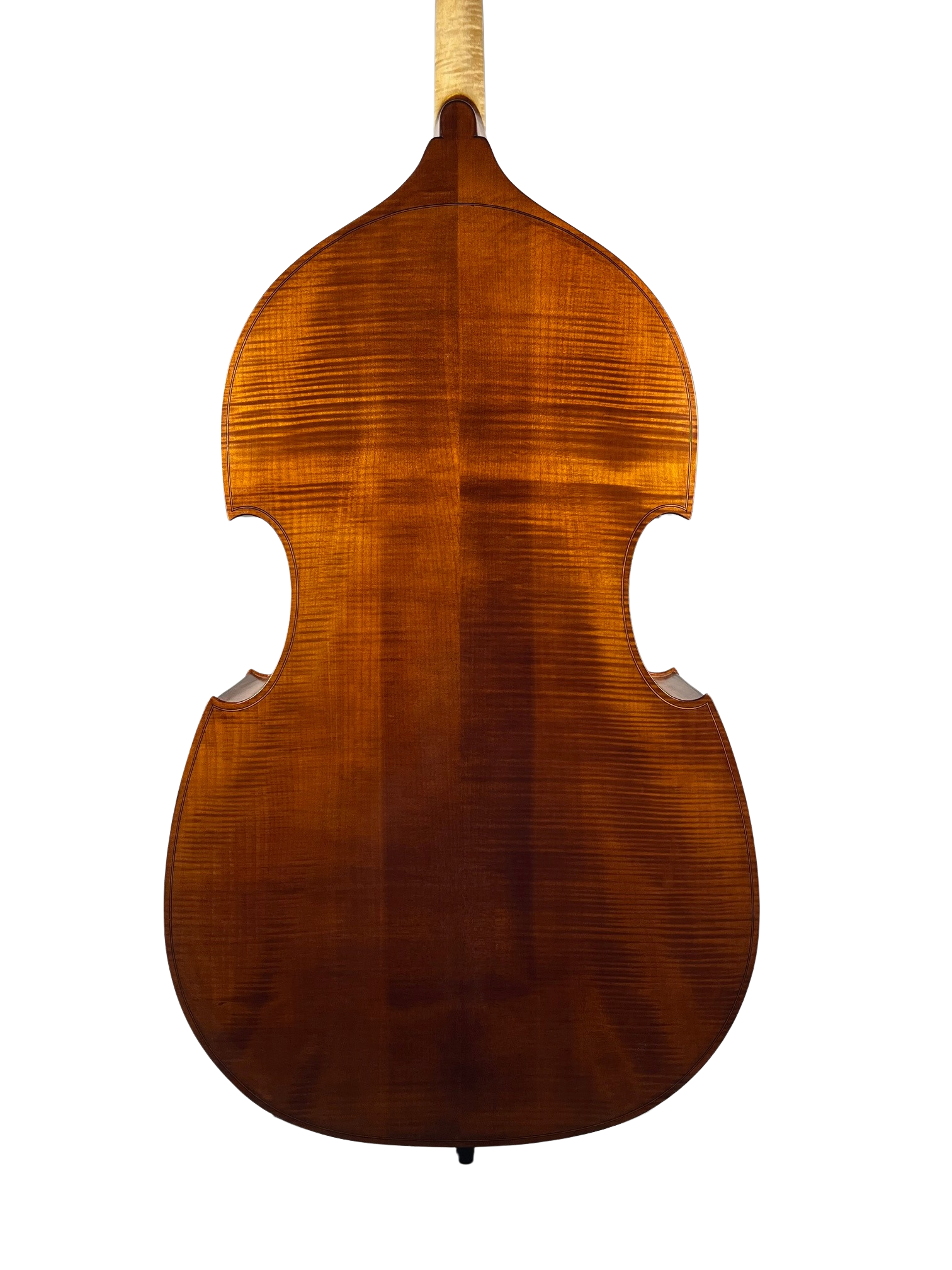 John Koehler 4th street model flatback double bass. A smaller 3/4 bass with a big sound, owing to John's unique interior bracing design and his vast knowledge as a bassist and luthier. This instrument is completely handmade by John with the finest Tone wood available, Big leaf maple flat back. hand varnished with Koehler's special recipe. A very fine professional instrument. More information at Johnkoehlerbasses.com