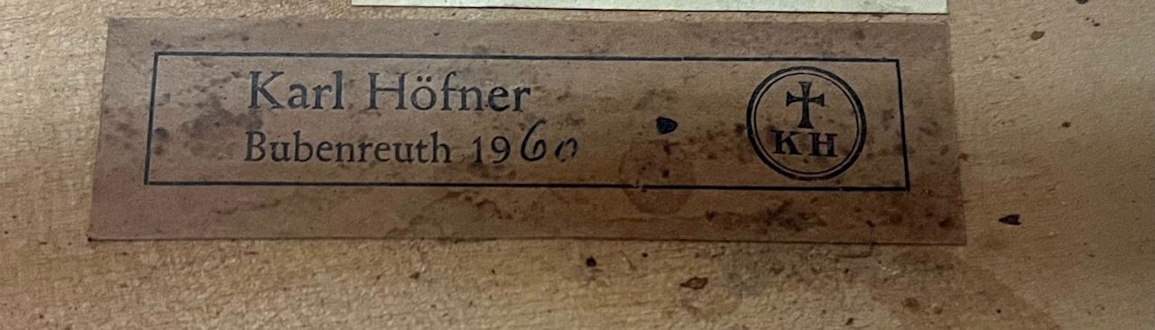 Full Size cello from the Karl Hofner firm, West Germany, 1960. Fine Bosnian maple back. Carpathian spruce top. golden yellow spirit varnish. In a good state of preservation