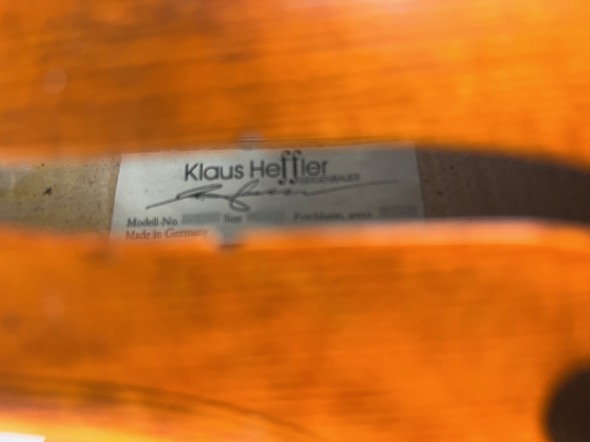 15 1/2" German viola by Klaus Heffler, Forscheim, Germany. Handmade viola with German spirit varnish over Bosnian maple back and Carpathian spruce top. In good preservation with full, clear tone.