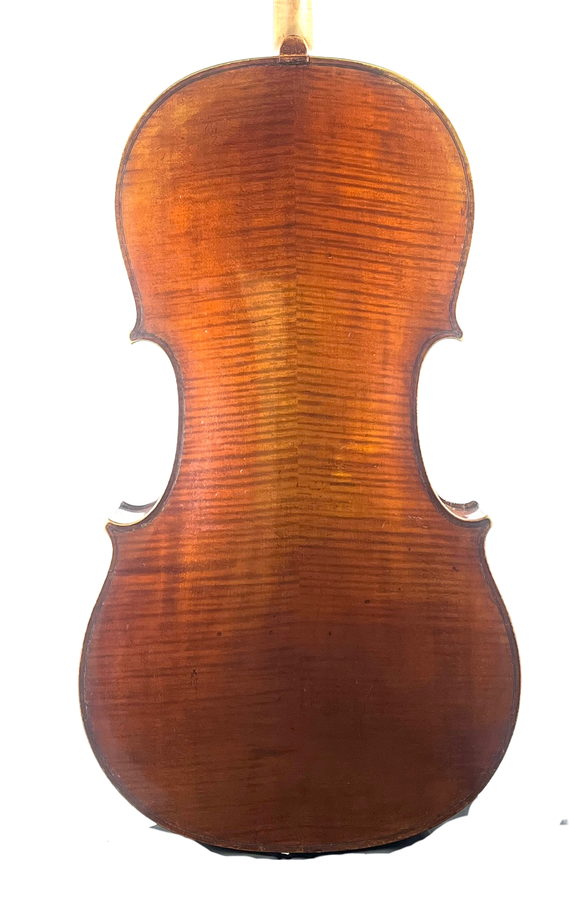 Cello handmade in Markneukirchen - Saxony circa 1920. This cello was made in Markneukirchen around 1920. It is a master made instrument, handmade of fine flamed Bosnian maple back and Carpathian spurce top. The varnish is a traditional Amber Pine shellac Spirit varnish in a dark brown hue. Recent restoration ensures this is in a good state of preservation and ready for many years of performance. The sound is rich and clear, with a brightness typical of fine German instruments of the time.