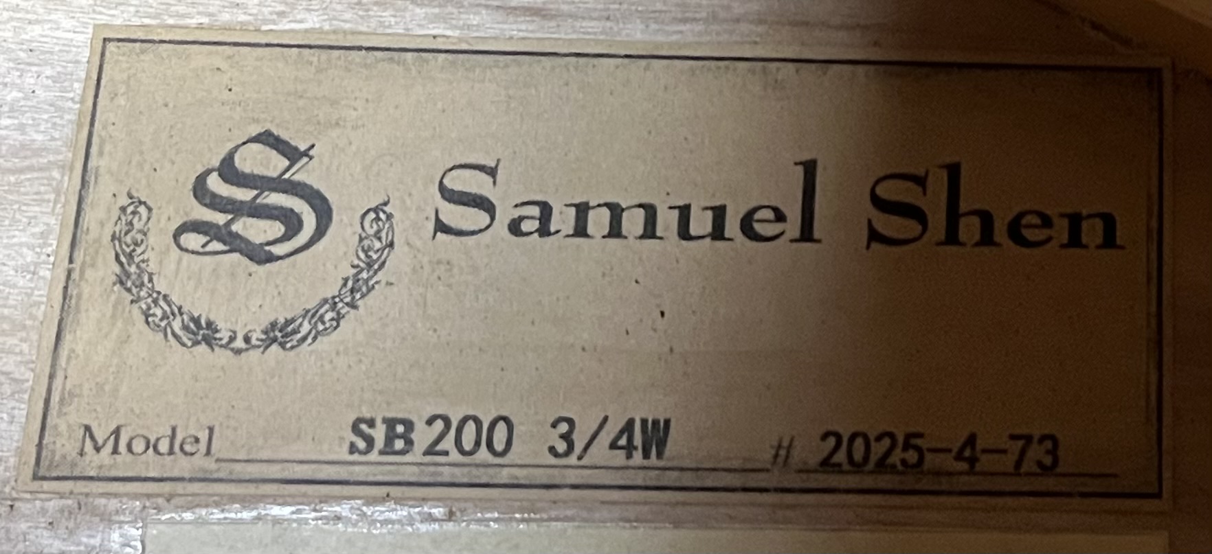 Shen Willow back SB200 Gamba model. The most popular of the high quality Shen line of musical instruments. A high quality fully carved double bass, professionally set up with adjustable European maple bridge by Hammond Ashley Violins.